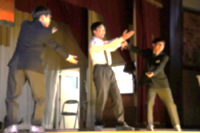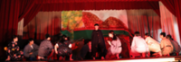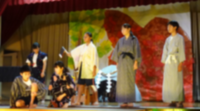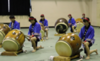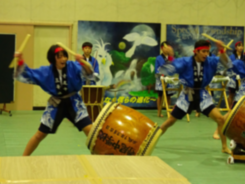 ステージ上での台本の読み合わせ 力強い和太鼓の練習(和太鼓班)