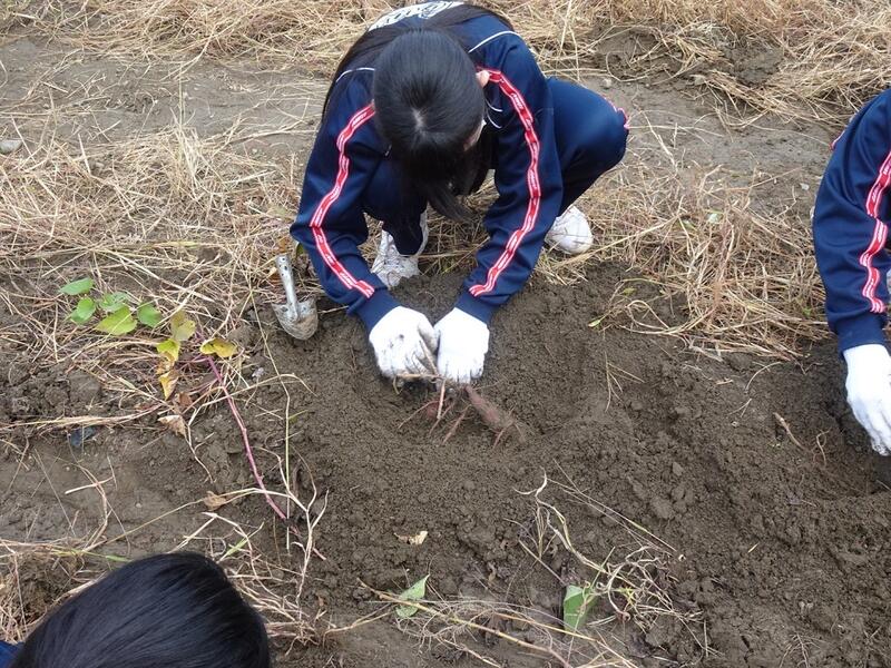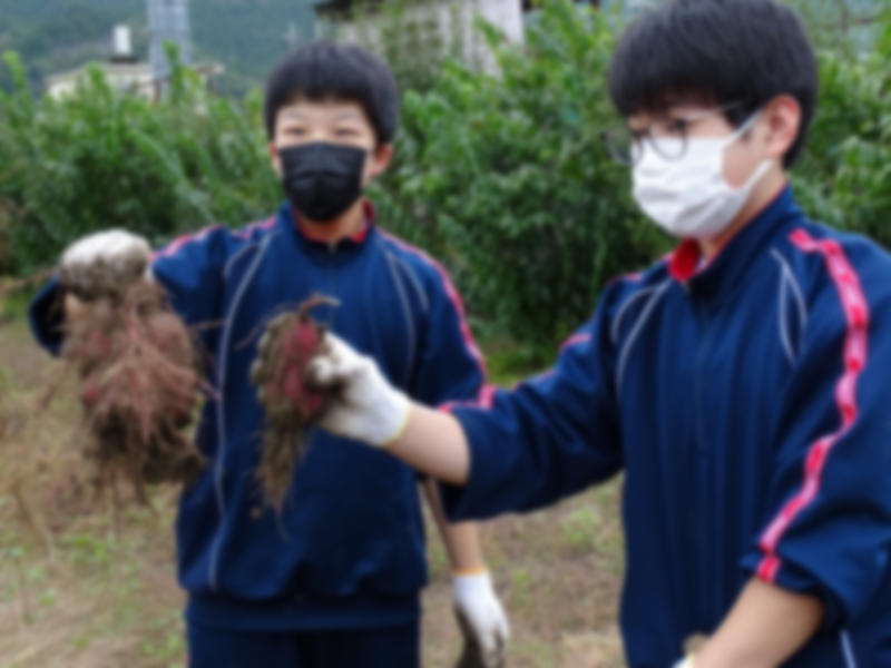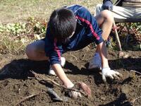 先月末(10月26日)の技術の時間に、6月に植付けをしたサツマイモの収穫を行いました。地域の学校支援ボランティアの方によれば、今年は梅雨が短く雨量も少なかったことからサツマイモの育ちは例年より悪いとのことでした。それでも、土を掘ってみると、まるまると大きくなったサツマイモがたくさん収穫できました。収穫したサツマイモは、11月16日(水)の家庭科の時間に調理実習で使用する予定です。