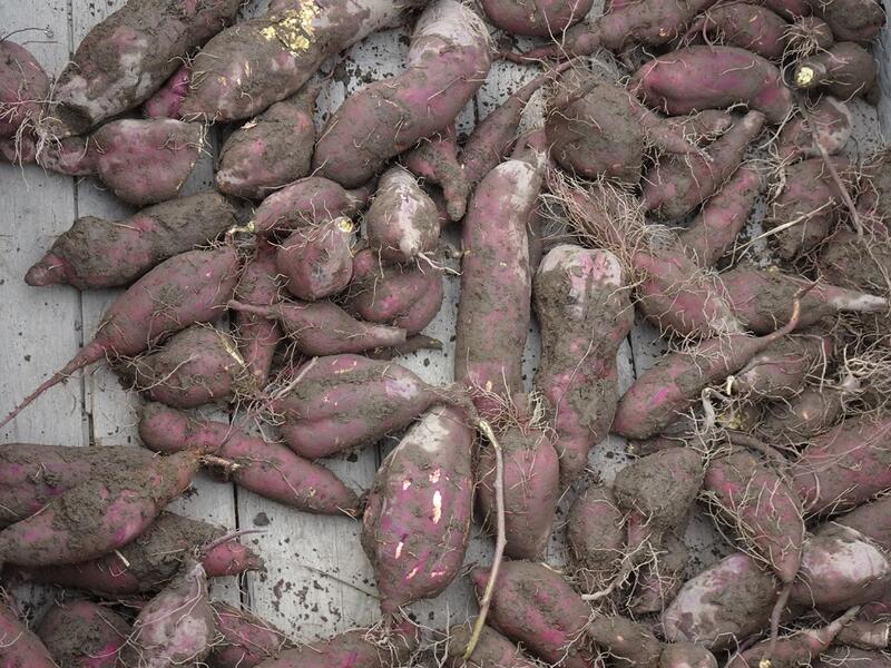サツマイモを折らないように注意しながら深く掘るのが大変でしたが、こんなにたくさん収穫できました。