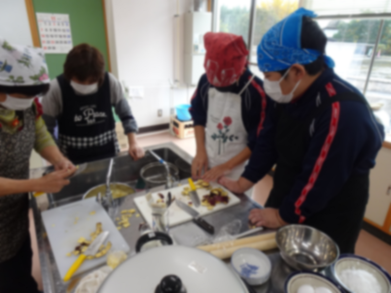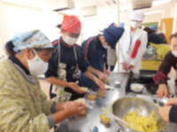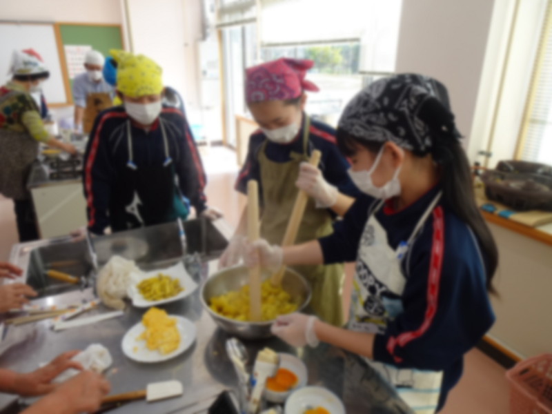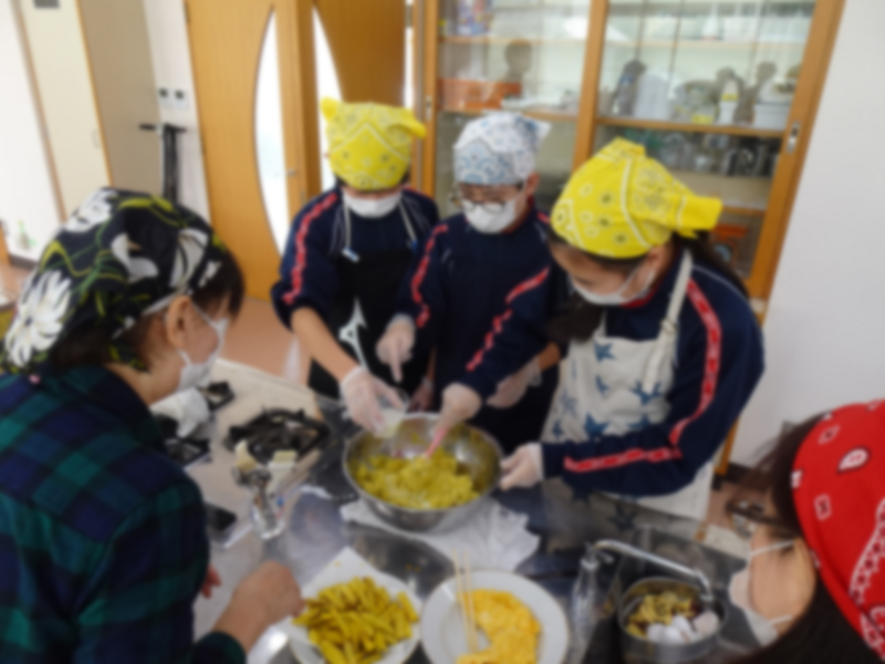 11月16日(水)の家庭科の時間、2年生は先月末に収穫したサツマイモを利用して、スイートポテトづくりを行いました。このスイートポテトづくりには、地域ボランティアの皆様9名にご協力をいただきました。生徒たちは、皮をむく、ふかす、こす、味付けをする、成形する、オーブンで焼く、といった一連の作業を、教わりながら楽しそうに行っていました。お陰で、全校生徒分のスイートポテトが完成し、給食の時間においしくいただきました。地域の皆様との大変よい交流の時間にもなりました。