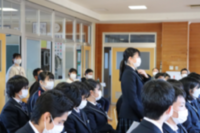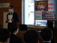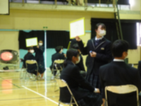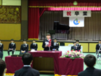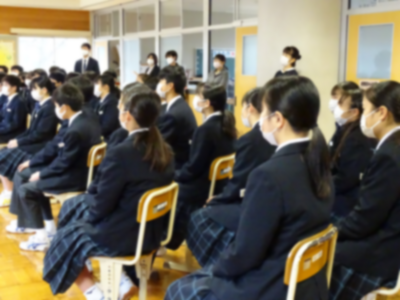 12月24日(金)は2学期の終業式でした。校長式辞では、たくさんの学校行事をスライドで一つ一つ振り返り、生徒たちの頑張りを再確認しました。また、各学年の代表生徒が意見発表を行いました。大変、中身の濃い2学期でした。そして、みな健康で終業式を迎えることができて何よりです。