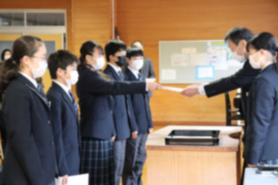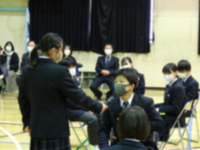 1月10日(火)、3学期がスタートしました。始業式に先立ち、新生徒会役員と3学期学級委員長の任命を行いました。始業式の校長式辞では、「卒業・進級を大テーマに、各学年段階に応じて、今年度の総仕上げと次年度への準備をしっかりと行い、4月からの自分を思い描きながら3学期を過ごしてみましょう。」と話がありました。2023年の干支は「癸卯(みずのとう)」。「癸(みずのと)」にちなんで「コロナ禍」の終わりが見える穏やかな1年になること、「卯」(うさぎ)」にちなんで飛躍の1年になることを期待したいです。