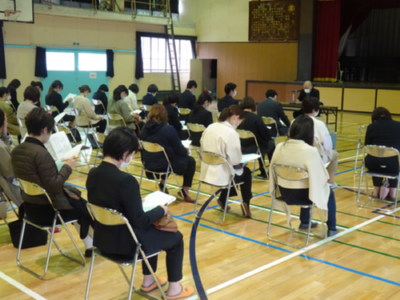 6月1日(水)午後、地震を想定した避難訓練の後、小中学校合同の引き渡し訓練を行いました。在校中に震度5強以上の地震が起きた場合は、学校からの連絡がなくても「緊急災害時の生徒引き渡しカード」に記載された方にお迎えに来ていただき、学校が確実に保護者の方に引き渡しを行うことになっていますが、今回は小中合同でその訓練を行いました。中学校においては、避難開始から引き渡し完了まで約20分。非常にスムーズな引き渡しが行え、万が一の時に備えた有意義な訓練になったことと思います。保護者の皆様にはお忙しい中、ご協力ありがとうございました。