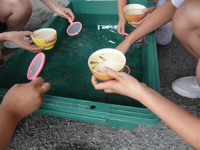 8月6日(土)の午前中に、寺尾公民館を会場にして、寺尾地区子ども会育成会連絡協議会主催の第33回子どもフェスティバルが開催されました。昨年、一昨年とコロナの影響で中止になっていましたので、3年ぶりの開催です。人が密集するのを避けるため、自治会ごとに前半と後半に分かれての2部構成で行いました。小学1年生から中学3年生までが、めだかすくいやストラックアウトなどのゲームを楽しみました。