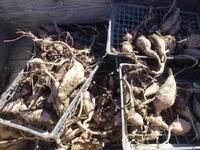 まず、つるを取り除きます。 次に黒マルチビニルをはがします。 そして土を掘ります。