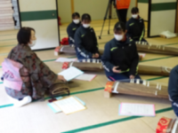 音楽の授業で2回にわたってお箏の授業を行いました。今年も、地域の方を指導者に招いて、1年生は「さくら さくら」2年生は「荒城の月」の演奏に挑戦しました。また「六段の調べ」を師範演奏していただき、生徒たちは日本に古くから伝わる箏の音色の美しさに聞き入っていました。