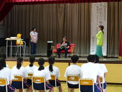 6月20日・29日の2日間、間中一代様に来ていただき、昔の話を語っていただきました。題目は、「うばすてやま」「耳なし芳一」です。生徒は、語りが始まるとすぐに素晴らしい世界に引き込まれ、最後まで聴き入っていました。「耳なし芳一」では琵琶の音の効果音も入り、臨場感あふれるすてきな会となりました。ありがとうございました。