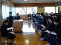 12月2日(木)、次年度の生徒会役員を決める選挙が行われました。投票に先立ち、立候補者による立会演説会が行われ、それぞれが抱負を発表しました。生徒からは立候補者への質問も出るなど活発な意見交換がされました。演説会の後、投票場所に移動し、投票を行いました。