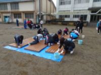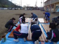 12月12日(日)午前、3年生とPTAによる卒業記念奉仕活動が行われました。今年は、渡り板の塗装作業や校舎壁の補修作業を中心に行いました。休日にもかかわらず3年生の保護者の皆様を中心にたくさんのご協力をいただきまして、心より感謝申し上げます。