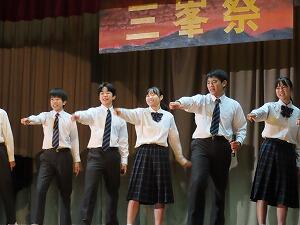 10/21(土)三峯祭が実施されました。今年度のスローガン「僕らを繋ぐ 最高の三峯祭 心を一つに 深まる絆」を掲げ、生徒一丸となり、練習の成果を精一杯発揮しました。実行委員や各チーフを中心に一生懸命準備や練習に取り組み、日を追うごとに団結力が高まりました。その結果、スローガン通り、最高の三峯祭になり、絆が深まったと振り返る生徒が多くいました。