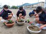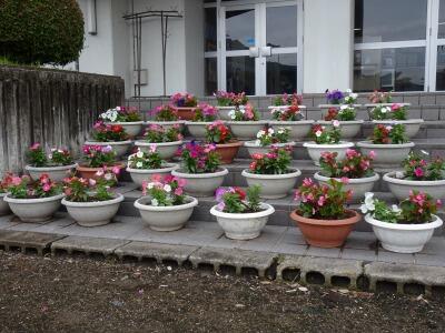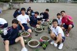 6月6日(木)の昼休みに、本年度も一人二鉢運動を行いました。今年はベゴニア、ペチュニア、日日草の三種類の花を植えました。生徒昇降口がひときわ明るく華やかになりました。