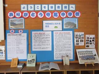 図書室の掲示と象山 投稿日時 : 02/09 寺尾中管理者 図書室は、閉校に向けての準備、整理のため現在、生徒は使用していません。 やや寂しさを感じますが、図書室の廊下掲示はいつも新しいものになっています。 現在は、閉校に向けての掲示物を作成して掲示してくれています。ありがとうございます。 図書室前のオープンスペースの窓から見える三峯山(像山)です。明日は、閉校式となります。 79年の長きにわたり、寺尾中学校の生徒・職員達を見守り、「自然は急がない」と勇気づけ続けた象山も静かにその時を待っています。(空の青さと雪の白さが素敵ですね。) Tweet {{options.likeCount}} {{options.likeCount}}