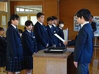 式の前に、新生徒会役員と第3学期学級委員長の任命を行いました。