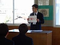 式の後、生徒指導担当の先生から、閉校式、卒業式に向けて“心”を大事にして、思いを行動で表していこうというお話がありました。
