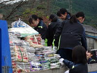 生徒会・PTAリサイクル資源回収 投稿日時 : 2023/11/14 寺尾中管理者 11月12日PTA・生徒会合同リサイクル資源回収が行われました。寺尾地区の全戸に呼びかけ、当日は各地区の自治公民館に搬出された資源物を保護者の方と生徒が協力して学校に運びました。保護者だけでは運べないところは、TAFの皆さんが手伝ってくれました。学校では種類ごとに分別してコンテナに入れました。寒い中の作業になりましたがPTAの方々と生徒、教職員一致団結しスムーズに行うことができました。 改めて、寺尾地区の皆様のご協力に感謝します。 Tweet {{options.likeCount}} {{options.likeCount}}