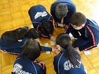 オープンスペースに集まって、それぞれ全学年男女混合+教職員の班を5つに分けてそれぞれで行いました。