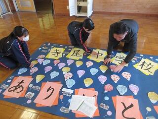 「寺尾中学校ありがとう」作成中 投稿日時 : 01/29 寺尾中管理者 新生徒会役員が中心となって、全教職員、全生徒が書いた閉校を迎える寺尾中学校へのメッセージを色模造紙に貼って掲示する「寺尾中学校ありがとう」を作成しています。一人一人の思いが書かれていて胸を打たれます。完成して掲示されるのが楽しみです。生徒会の皆さんありがとうございます。 Tweet {{options.likeCount}} {{options.likeCount}}