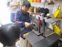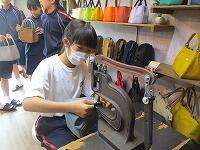 家庭科室で裁縫の学習をしてました。ミシンを使っている生徒もいます。
