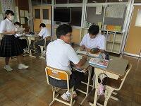 本日も気温が高かったので、部活動を30分早めに終えて教室で冷房をつけてクールダウンの時間をとった後に下校としました。生徒の体調の様子を見に冷房を付けた教室をのぞくと、みんなそれぞれ勉強していました!自主的に取り組んでいました。すごいですね。