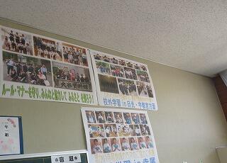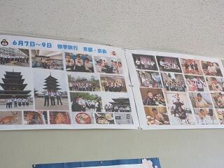 各学年の教室の背面には、先週の各学年行事(修学旅行、職場体験学習、校外学習・ものづくり体験)の写真がたくさん掲示されていました。担任の先生が撮った写真を選んで作成したものです。子供達への思いが感じられます。真剣なまなざしや笑顔が多く、見ていて楽しい気持ちになりました。