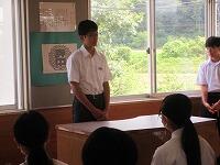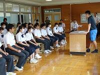 部活動担当の先生が、大会に参加するにあたっての留意事項と心構えを話しました。寺尾中として参加する最後の総体大会になります。そのような思いを胸に全力で頑張って欲しいと話しました。