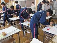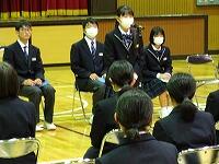 1、2年生から合唱とメッセージ色紙を3年生に送りました。そして、3年生からもメッセージ色紙と励ましの言葉が送られました。
