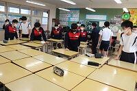 本日、今年度最初の避難訓練が行われました。今回は大きな地震から火災発生を想定した訓練でした。どの生徒も、真剣な表情で、安全かつ迅速に行うことができました。訓練の後は、学校安全担当の先生のお話や校長の先生のお話を聞いたり、各クラスで担任の先生と振り返りを行ったりして、災害に対する意識を高めることができました。