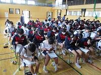 椅子の間隔を開けるなど対応した会場での始業式でしたが