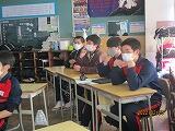 緊急地震速報が放送で流れた後、生徒たちはすぐに机の下に隠れることができ、自身を守る行動をとることが出来ました。