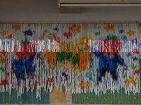 参加します。全校生徒が参加して作った“千羽鶴”を
