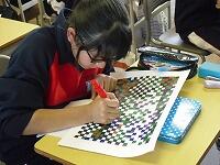 (写真は3年生の展示モザイクアートに取り組んでいる様子)