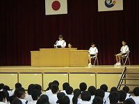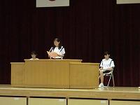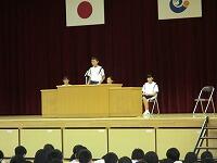 終業式では各学年、生徒会より「1学期を振り返って」の発表があり、