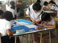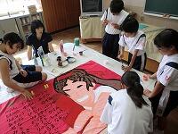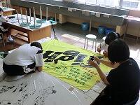 「学級旗」作りが行われています。学級旗作りを通して、クラスの