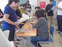 ▲作業がスムーズにいくように、PTA女性本部役員の皆様が準備をしてくれました。
