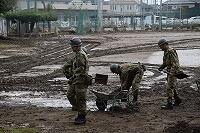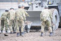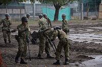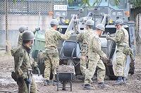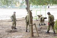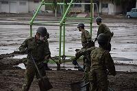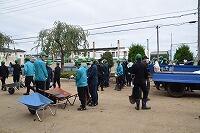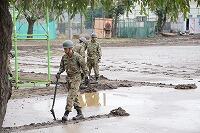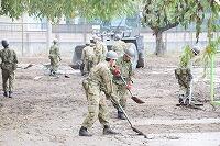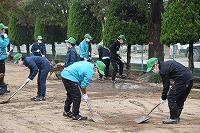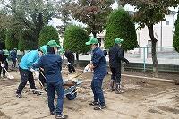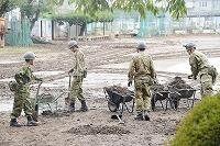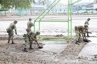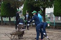 15日には校舎・体育館等の消毒に、16日からは校庭の土砂を取り除いていただいています。