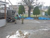 駐車場にたまってしまった土砂を取り除いていただきました。