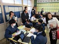 生徒たちは緊張しながら授業を受けていましたが、どの教科でも活発に話し合う姿が見られ、様々な友人の意見に触れながら多面的・多角的にものごとを考えることができました。