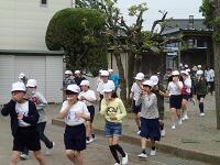大きな地震が発生し、その後校舎内で火災が発生したという想定で、教室から指定された避難経路をたどり、校庭の避難場所へ集合するという訓練です。