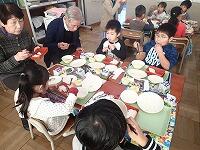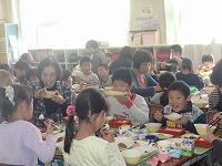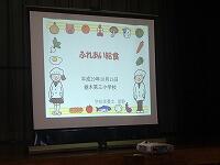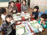 10月26日(木) 今日は、栃三小児童のおじいさんとおばあさんをお招きして、各学級で一緒に給食を食べる「ふれあい給食」を実施しました。各教室に分かれて給食を食べる前に、体育館で全体説明会を行いました。児童会を代表して、ボランティア委員会委員長の川島隆聖さんがあいさつした後、続いて学校栄養士の星野知里先生が給食についての講話を行いました。全体説明の後は、各学級からのお迎えを受けて、それぞれの教室へ移動です。各学級で歓迎を受け、さっそく「いただきます」みんな和やかに、楽しく交流しての給食です。今日の献立は、さばのスタミナ焼き、豚汁、磯香あえ、それとご飯に牛乳、みかんのゼリーでした。祖父母の皆様も子どもたちも楽しそう!心の交流がいっぱいの「ふれあい給食」でした。