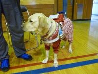 2月16日(金) 栃三小に盲導犬が来校です。 栃木市で1頭だけの盲導犬、名前は「ぼたん」です。栃木市社会福祉協議会の主催する「福祉体験学習」が栃三小で実施され、そのために来校しました。待ち受けていたのは4年生です。 この学習では、盲導犬「ぼたん」を連れた坂田英樹さんが、子どもたちに盲導犬のこと、盲導犬と共に生活する毎日のことなど話してくださった後、子どもたちからの質問に答えてくださいました。盲導犬と一緒に生活する楽しみは?という質問には、「スポーツが楽しめるようになったことです」との答えでした。 お話を聞いた後、みんなで「アイマスク体験」をしました。 視覚障害をもつ方との交流は、4年生たちにとって貴重な学習となりました。 「ボタン」の頭を一人一人がなでなでしてお別れです。