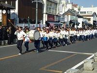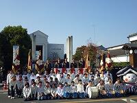 11月5日(日)市役所前の大通りで、毎年恒例の防火広報パレードが行われました。栃木市内の全消防団の方々とたくさんの消防関係車両が行進する盛大なパレードです。このパレードで、栃三小の鼓笛隊は今年も先導の役割を担い、制服を着た消防団員の皆様の隊列の前を堂々と演奏しながら行進しました。 とても長い隊列でしたので、25分にわたる長時間の演奏となりました。演奏が終わって、山車会館の前でとち介とともに記念撮影。みんなよく頑張りました。
