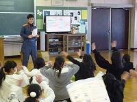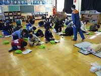 佐々木さんの、楽しく分かりやすい説明を聞きながら、子どもたちは救急救命の手順を覚えていきました。