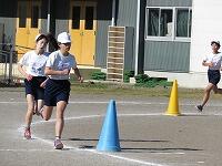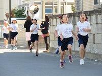 上学年は、学校周辺の道路を使った1周1200mほどのコースに、校庭のトラックを走る距離を加えて、4年生1300m、5年生6年生は1500mとしたコースです。