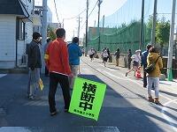 校外に出て走る子どもたちの安全を確保するため、交通指導員の皆様、PTA役員の皆様、地域の見守りボランティアの皆様が立哨してくださいました。ありがとうございました。おかげで全員無事に、事故なく完走することができました。