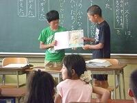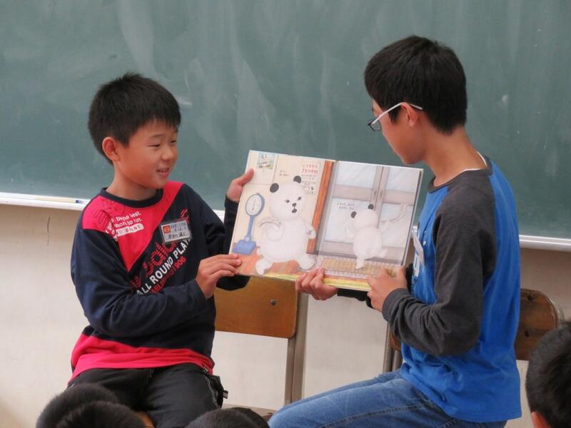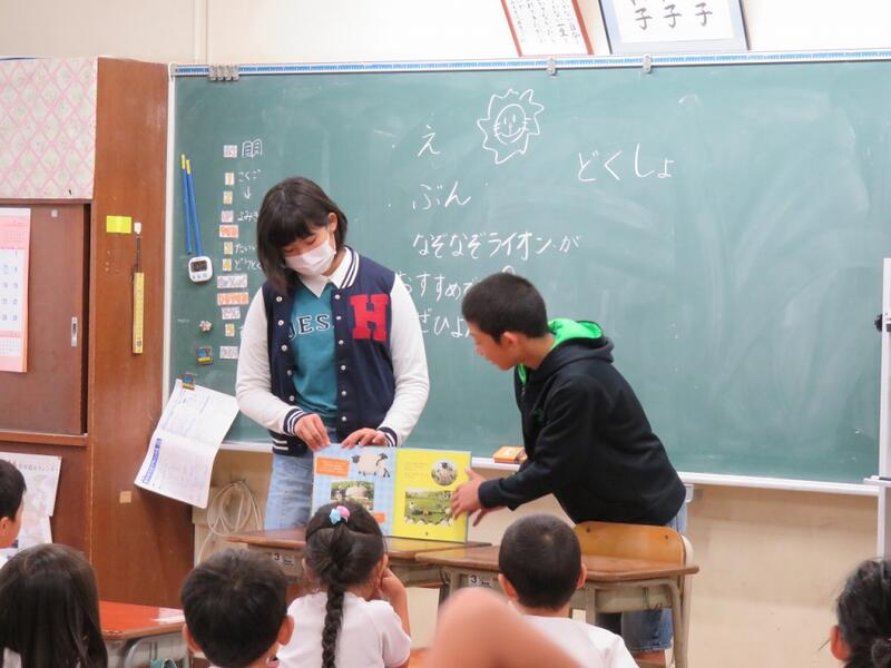 オープンタイムには、図書委員が1~3年生の教室で読み聞かせをしています。