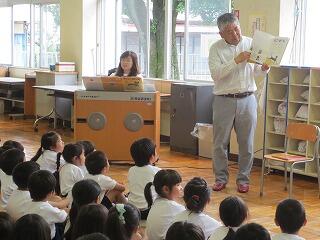 21日(火)、読書週間の行事の一つとして、「りんごの会」の方々による読み聞かせがありました。