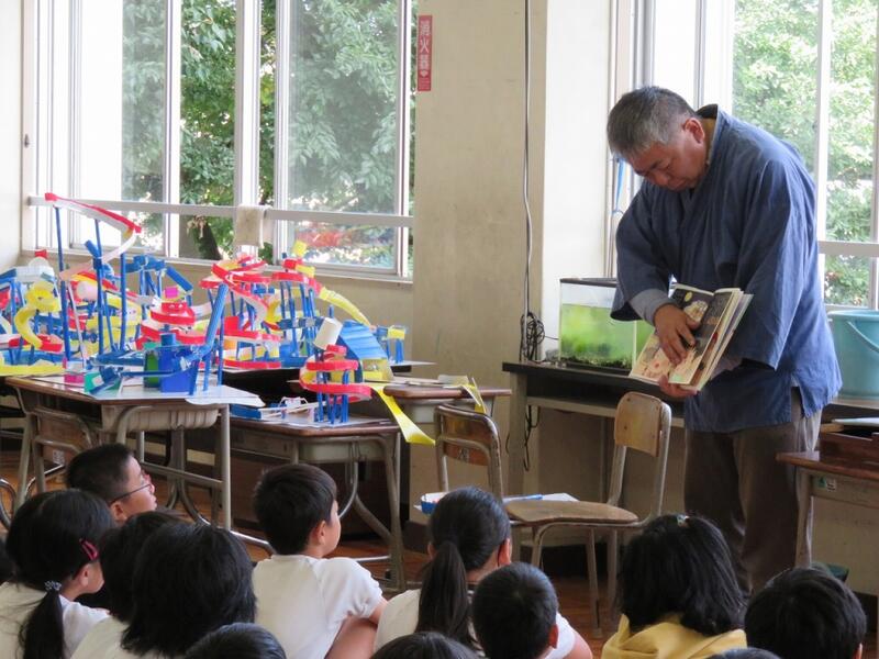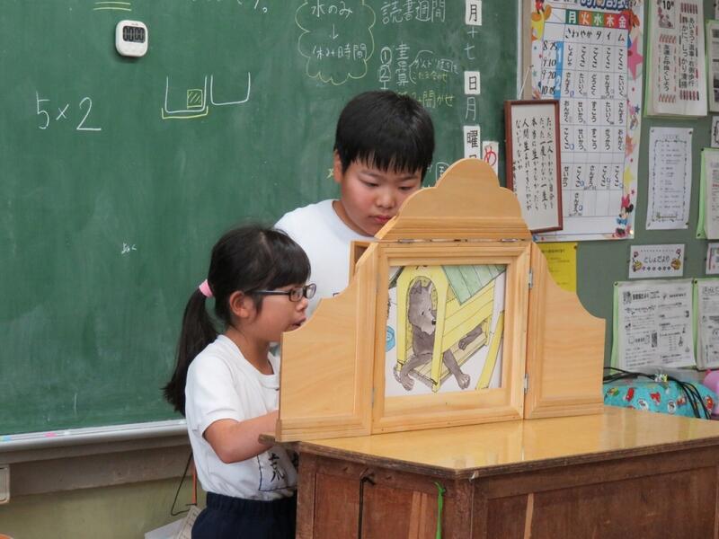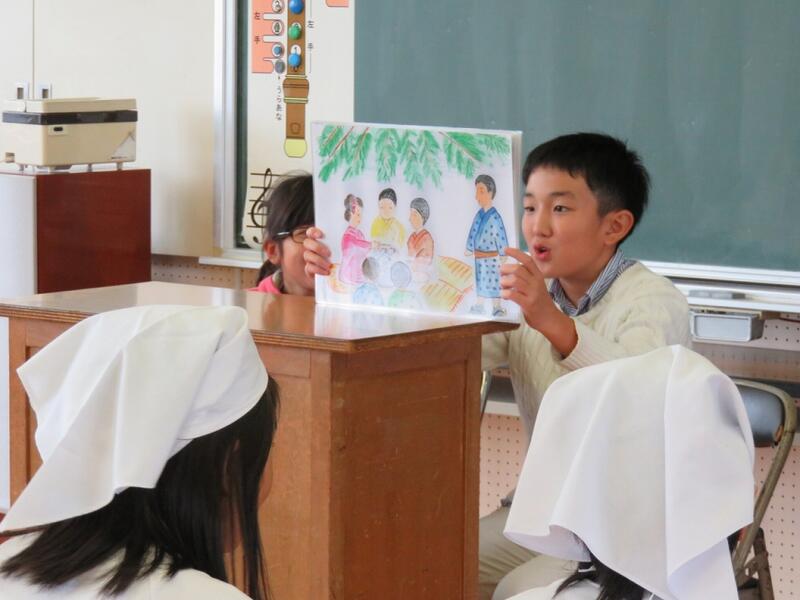 朗読ボランティアはなみずき(代表:髙久文江様)より頂いた、手作りの「路傍の石」紙しばいを、昼休みにやっています。
