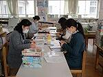 今年も、26日(木)と27日(金)に、ボランティアさんにご来校いただき、図書室で修繕作業を行っていただきました。