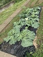 理科の観察のために、畑にキャベツの苗を植えて、ニンジンの種を蒔きました。