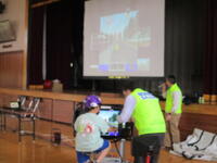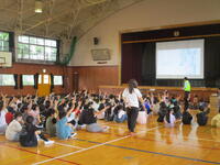 今日の3,4時間目に上学年と下学年とに分かれて、交通安全教室を体育館で行いました。「くらし安全安心課」の方から、道路を横断するときの注意や自転車に乗るときのマナーやルールについてお話をいただき、代表数人が自転車シミュレーターによる正しい自転車の乗り方を体験しました。たった一つしかない大切な命です。交通事故にあわないよう、みんなで気を付けましょう
